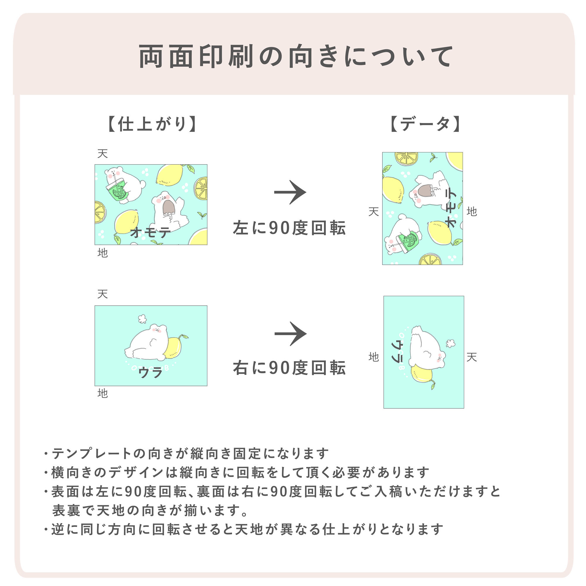 横型でデータを制作された場合は、縦型になるように回転してからご入稿をお願いいたします。