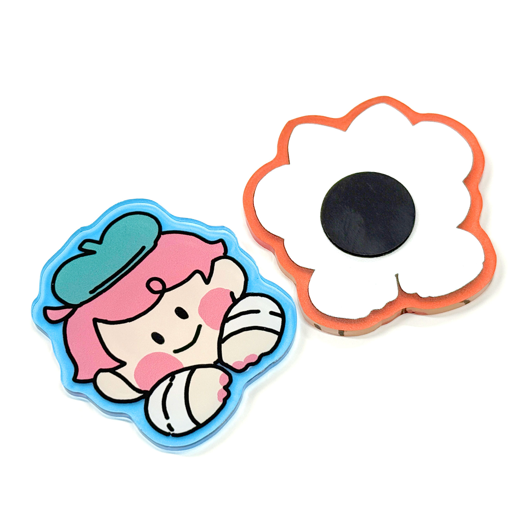 スチールの面にくっつくアクリルマグネットです。