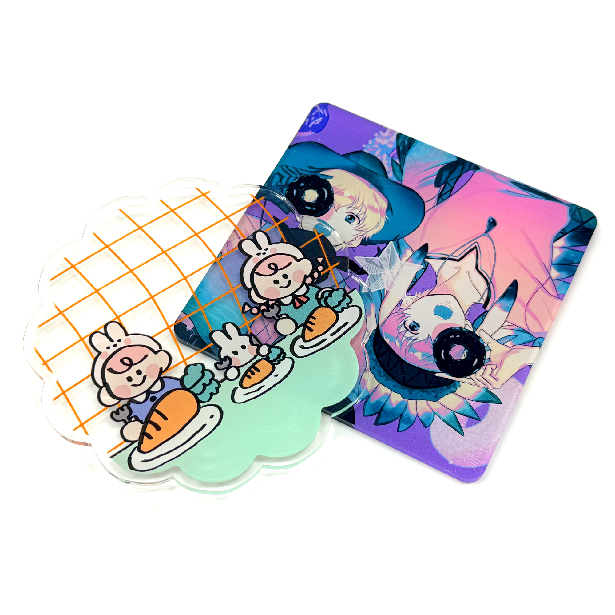 留め具やボールチェーンなどのパーツがない分、少し安価に提供しているアクリル商品です。