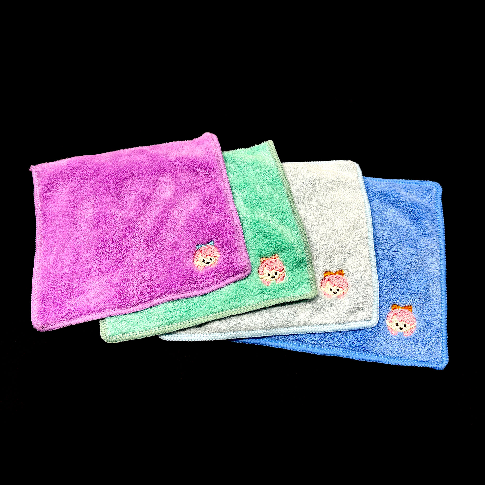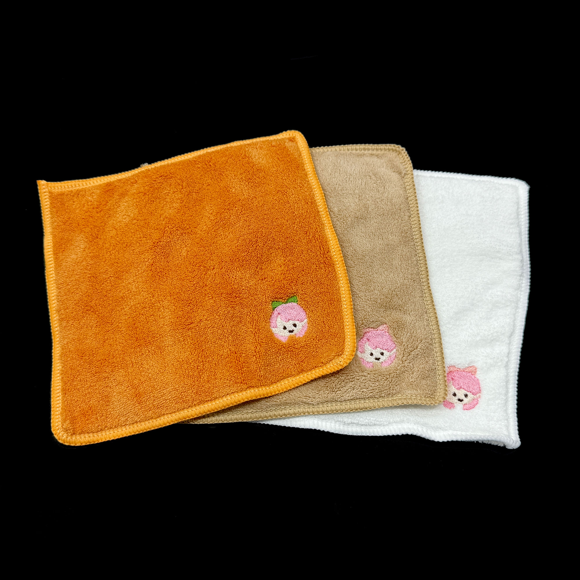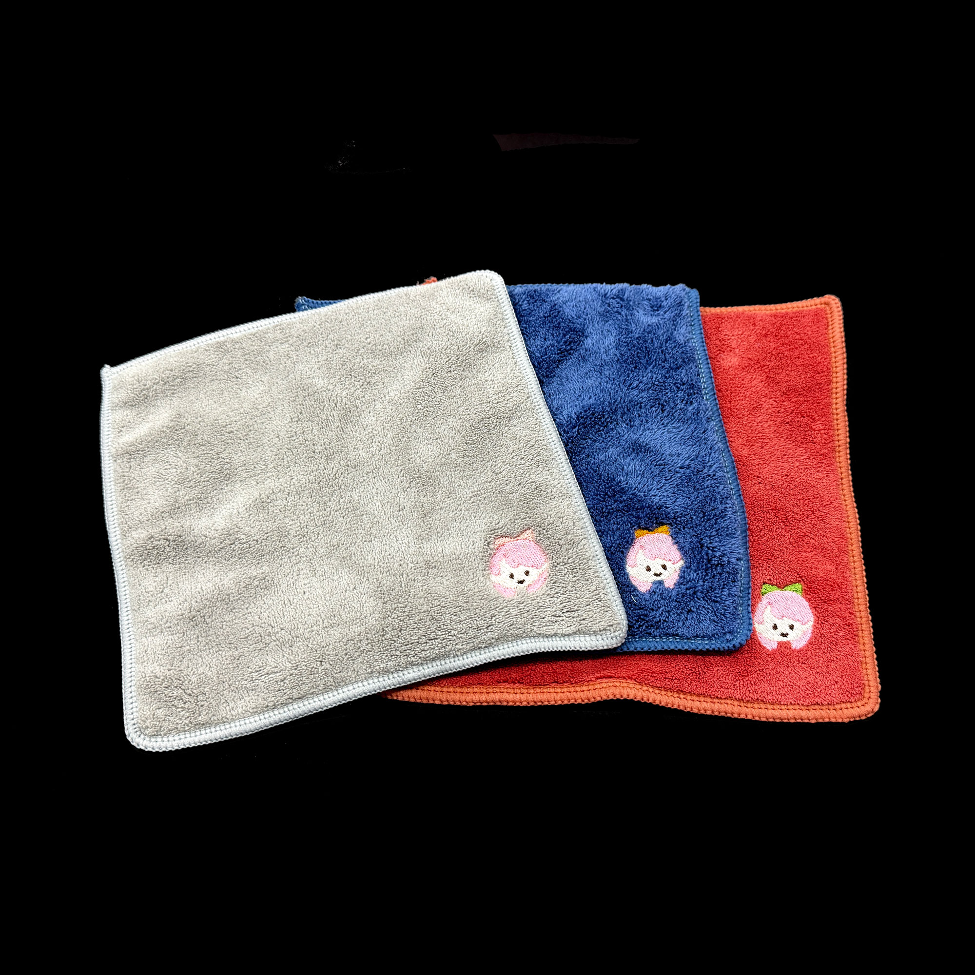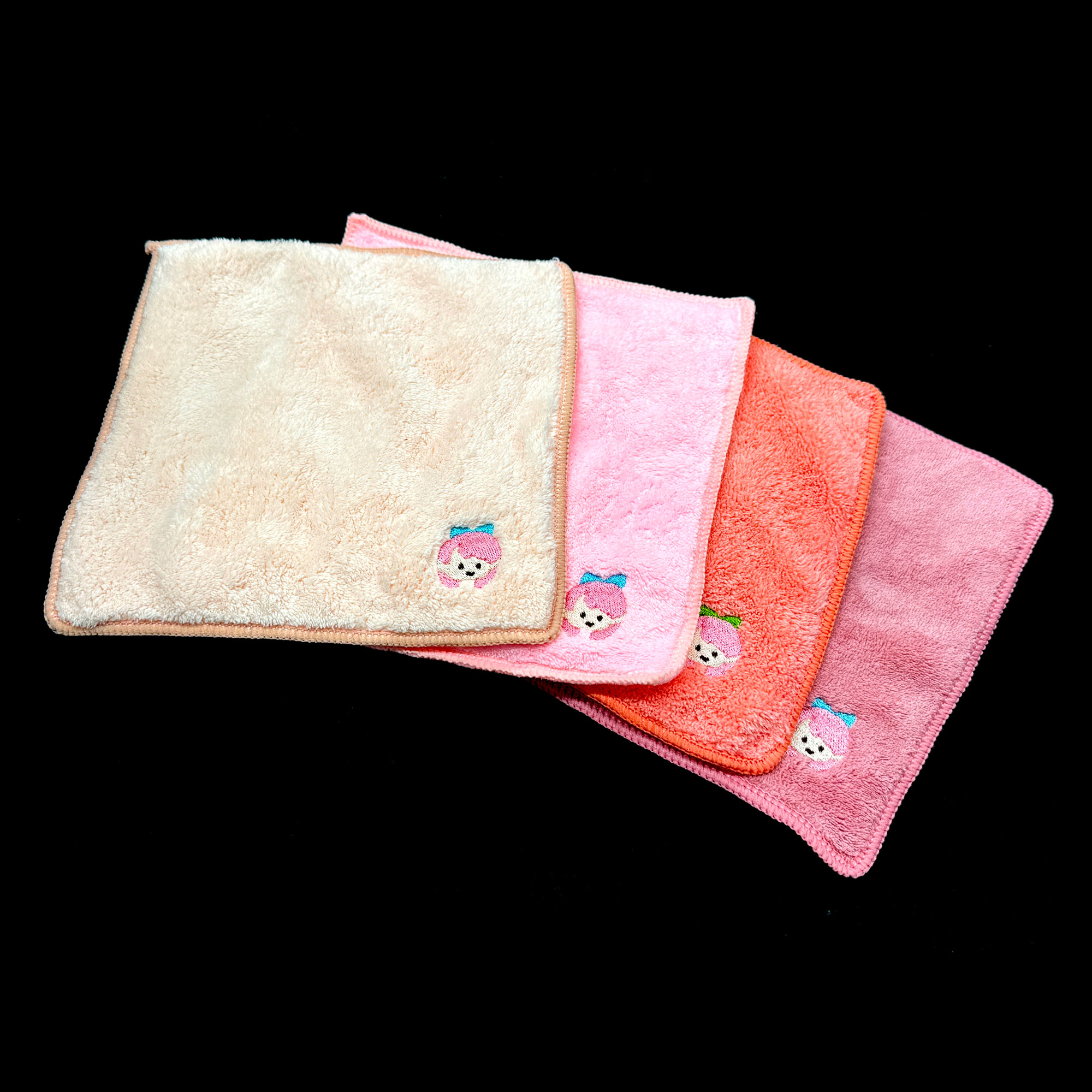 ・フワフワ刺繍ハンカチは、一角のみが四角形、残りが角丸の仕上がりです、四角形の対角線上の角丸に刺繍を行います。