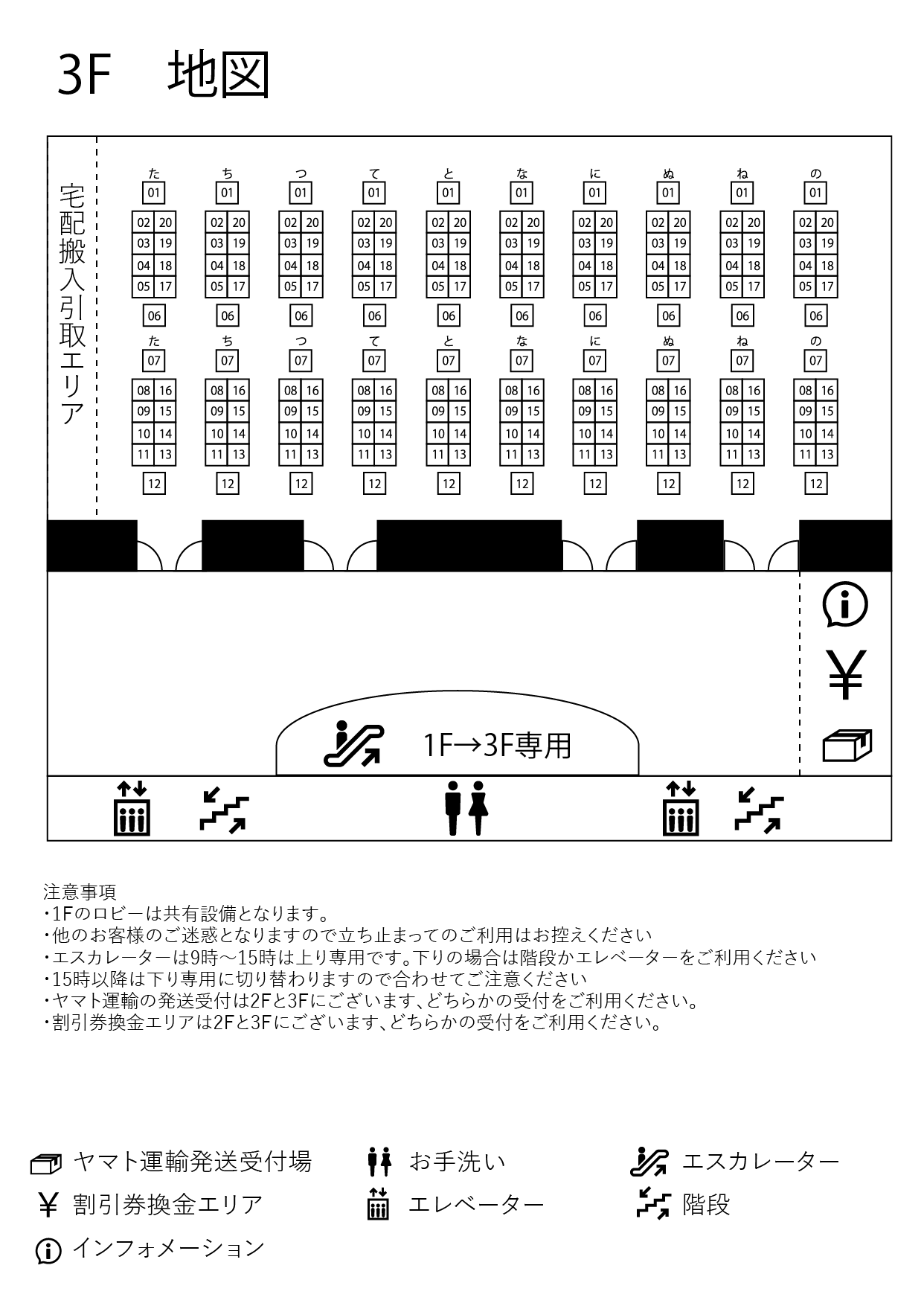 - 引き取りのなかった荷物は、各フロアの「宅配搬入/搬出エリア」にてお預かりしております。